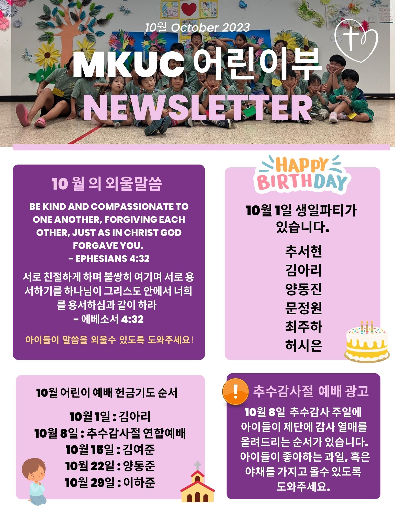 MKUC 어린이부 10월 Newsletter 입니다 - PART 1