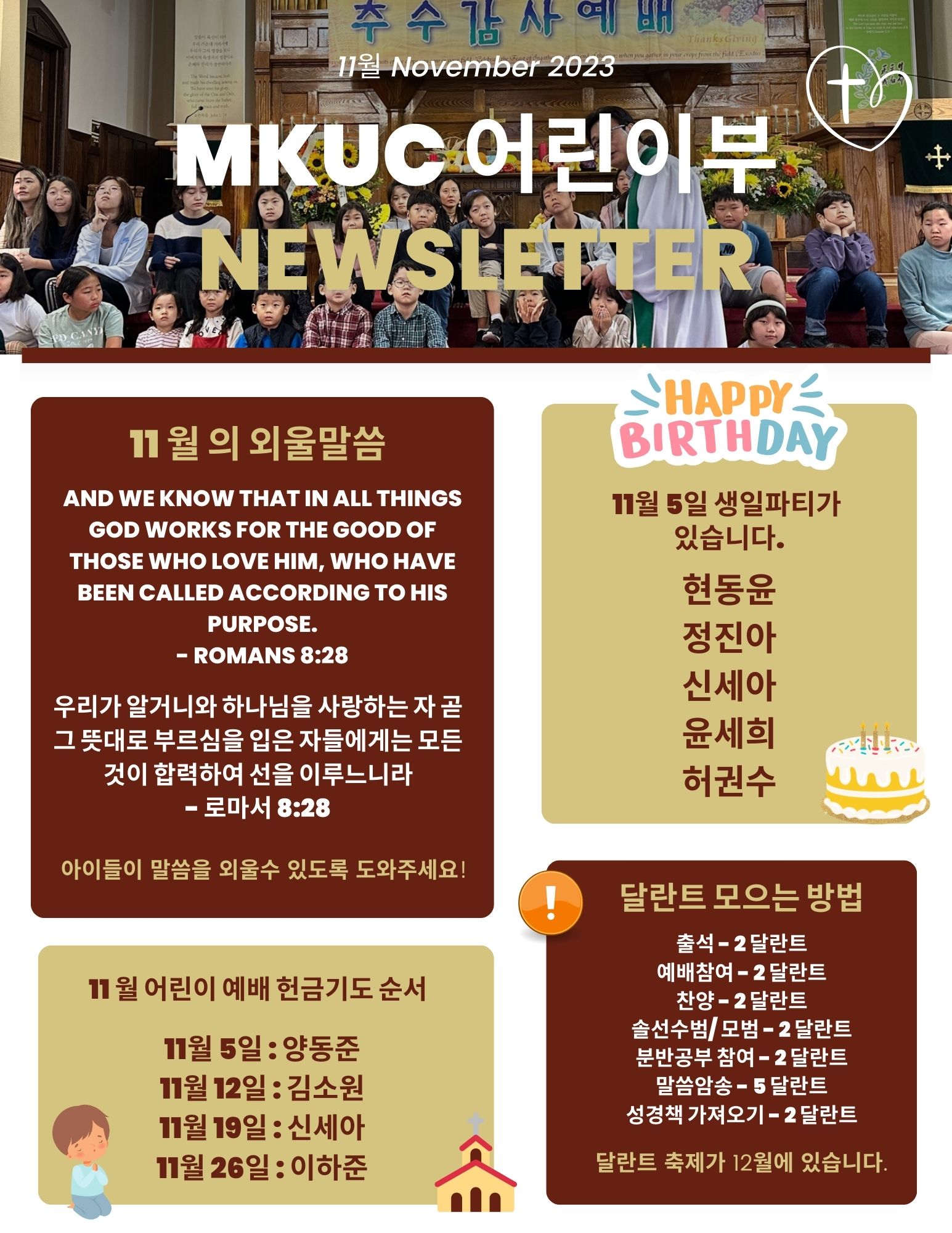MKUC 어린이부 11월 Newsletter 입니다 - PART 1