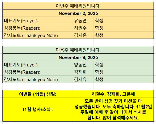 [11월02일] 예배위원 및 광고