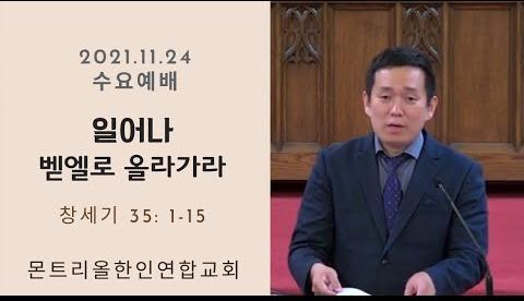 20221.11/24수요예배/창세기 35: 1-15/일어나 벧엘로 올라가라/ 몬트리올 한인연합교회/정봉희 목사