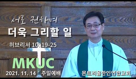 2021.11.14/주일 예배/서로 권하며 더욱 그리할 일/히브리서 10:19-25/몬트리올 한인연합교회/김진식목사.