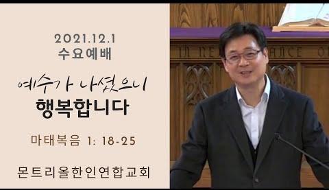 2021.12.01/수요예배/예수가 나셨으니 행복합니다/마태복음 1: 18-25/몬트리올 한인연합교회/김진식목사