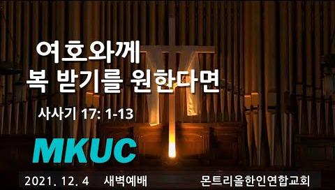 2021.12.4/새벽예배/여호와께 복 받기를 원한다면/사사기 17: 1-13/몬트리올 한인연합교회/김진식목사