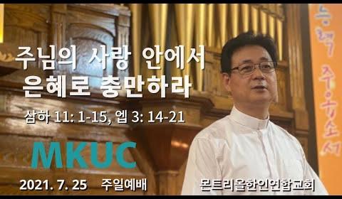 2021.07.25/주일예배/주의 사랑 안에서 은혜로 충만하라/사무엘하 11:1-15, 에베소서 3:14-21/몬트리올 한인연합교회/김진식 목사.