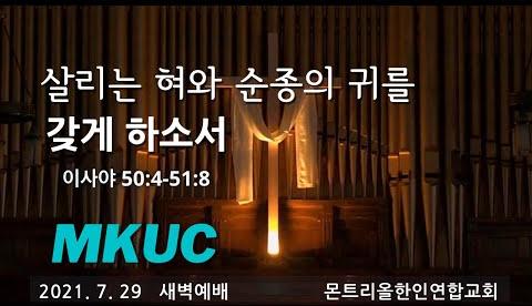 2021.7.29/새벽예배/살리는 혀와 순종의 귀를 갖게 하소서/이사야 50:4-51:8/몬트리올 한인연합교회/김진식목사