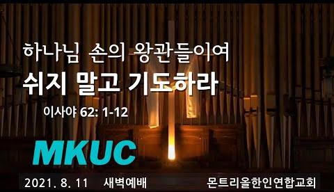 2021.8.11/새벽예배/하나님 손의 왕관들이여 쉬지말고 기도하십시오/이사야 62: 1-12/몬트리올 한인연합교회/김진식목사