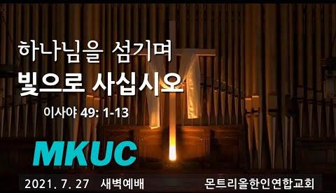 2021.727/새벽예배/하나님을 섬기며 이방의 빛으로 사십시오/이사야 49: 1-13/몬트리올 한인연합교회/김진식목사