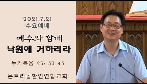 2021.7.21/수요예배/예수와 함께 낙원에 거하리라/누가복음 23: 33-43/몬트리올 한인연합교회/김진식목사