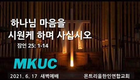 2021.6.17/새벽예배/하나님 마음을 시원케 하며 사십시오/잠언 25: 1-14/몬트리올 한인연합교회/김진식목사