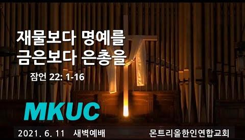 2021.6.11/새벽예배/재물보다 명예를 금은보다 은총을/잠언 22: 1-16/몬트리올 한인연합교회/김진식목사