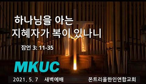 2021.5.7/새벽예배/하나님을 아는 지혜자가 복이 있나니/잠언 3: 11-35/몬트리올 한인연합교회/김진식목사