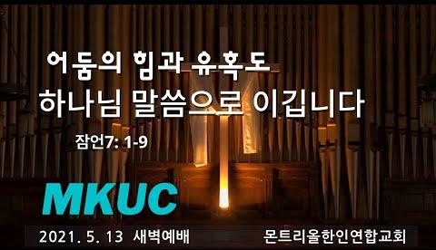 2021.5.13/새벽예배/어둠의 힘과 유혹도 하나님 말씀으로 이깁니다/잠언 7: 1-9/ 몬트리올 한인연합교회/ 김진식목사
