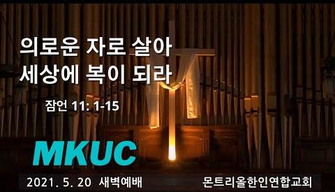 2021.5.20/새벽예배/의로운 자로 살아 세상에 복이 되라/잠언 11: 1-15/몬트리올 한인연합교회/김진식목사