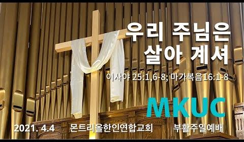 2021.04.04 부활주일 예배/우리 주님은 살아 계셔/이사야 25:1, 6-8 , 마가복음 16: 1-8/몬트리올 한인연합교회/김진식 목사.