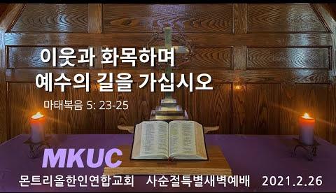 2021.2.26/사순절특새09/이웃과 화목하며 예수의 길을 가십시오/마태복음 5: 23-25/몬트리올한인연합교회/김진식목사
