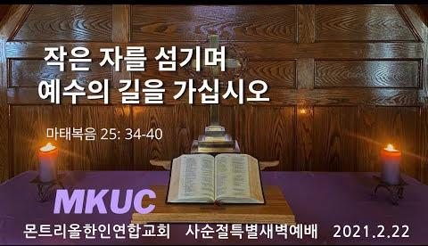 2021.2.22/사순절 특새 05/작은 자를 섬기며 예수의 길을 가십시오/마태복음 25: 34-40/몬트리올한인연합교회/김진식목사