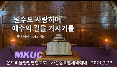 2021.2.27/사순절특새 10/원수도 사랑하며 예수의 길을 가시기를/마태복음 5: 43-48/몬트리올한인연합교회/김진식목사