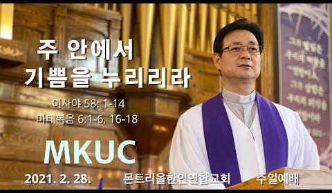 2021.02.28 주일예배/주 안에서 기쁨을 누리리라/이사야 58: 1-14, 마태복음 6: 1-6, 16-18 /몬트리올 한인연합교회/김진식 목사.