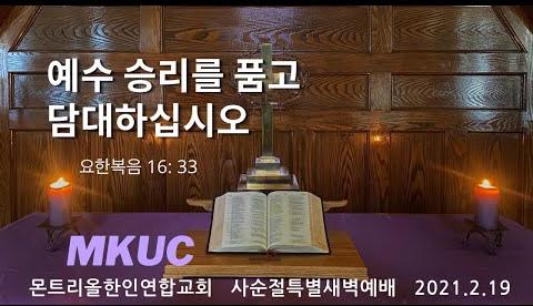 2021.2.19/사순절 특새 03/예수 승리를 품고 담대하십시오/요한복음 16: 33/몬트리올한인연합교회/김진식목사