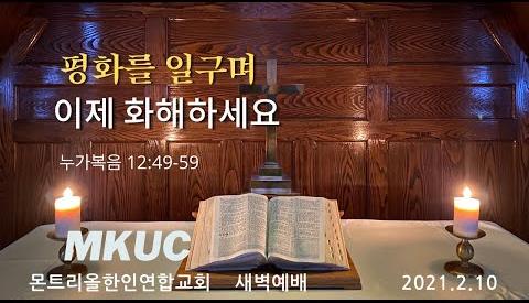 2021.2.10 새벽예배/평화를 일구며 이제 화해하세요/누가복음 12:49-59