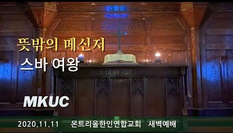 2020.11.11 새벽예배/뜻밖의 메신저 스바 여왕/역대하 8: 17 -9:12/몬트리올한인연합교회/김진식 목사