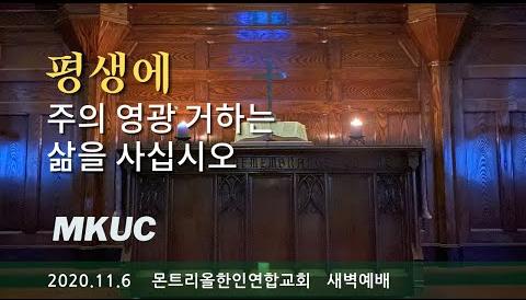 2020.11.6 새벽예배/평생에 주의 영광 거하는 삶을 사십시오/역대하 6: 1-11/몬트리올 한인연합교회/김진식 목사
