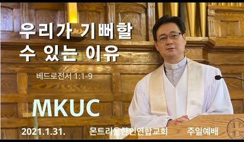 2021.01.31 주일예배/우리가 기뻐할 수 있는 이유/베드로전서 1: 1-9/몬트리올한인연합교회/김진식목사