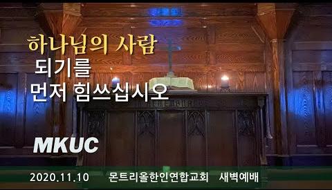 2020.11.10 새벽예배/하나님의 사람 되기를 먼저 힘쓰십시오/역대하 8: 1-16/몬트리올한인연합교회/김진식 목사