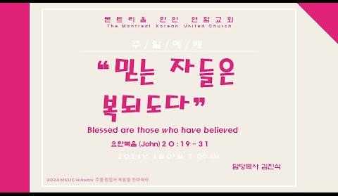 2024.04.07 주일예배/믿는 자들은 복되도다 /요한복음(John) 20: 19-31 / 몬트리올한인연합교회/ 김진식목사