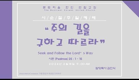 2024. 2. 18 주일예배/ 주의 길을 구하고 따르라/ 시편 25:1-15/ 몬트리올한인연합교회/ 김진식목사