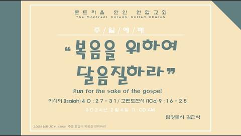 2024/02/04/주일예배/복음을 위하여 달음질하라/이사야(Isaiah) 40: 27-31, 고린도전서(1Co) 9: 16-25.