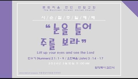 2024.3.10/주일예배/ 눈을 들어 주를 보라/민수기(Numbers) 21: 1-9 요한복음(John) 3: 14-17 / 김진식목사
