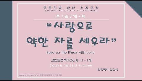 2024/01/28/주일예배/사랑으로 약한 자를 세우라/고린도전서(1 Co) 8: 1-1 3