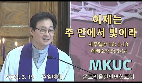 [몬트리올한인연합교회]2023.03.19/주일예배/이제는 주 안에서 빛이라/사무엘상 16 : 1 - 13 , 에베소서 5 : 8 - 14