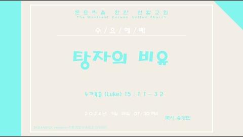 2024/9/25/ 수요예배/ 탕자의비유/누가15:11-12/ 몬트리올 한인연합교회/ 송영민목사