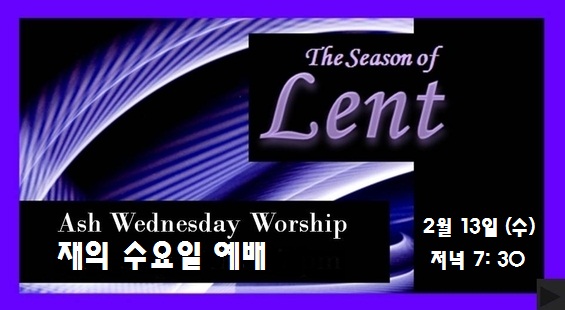 재의 수요일 예배가 다음과 같이 있습니다.