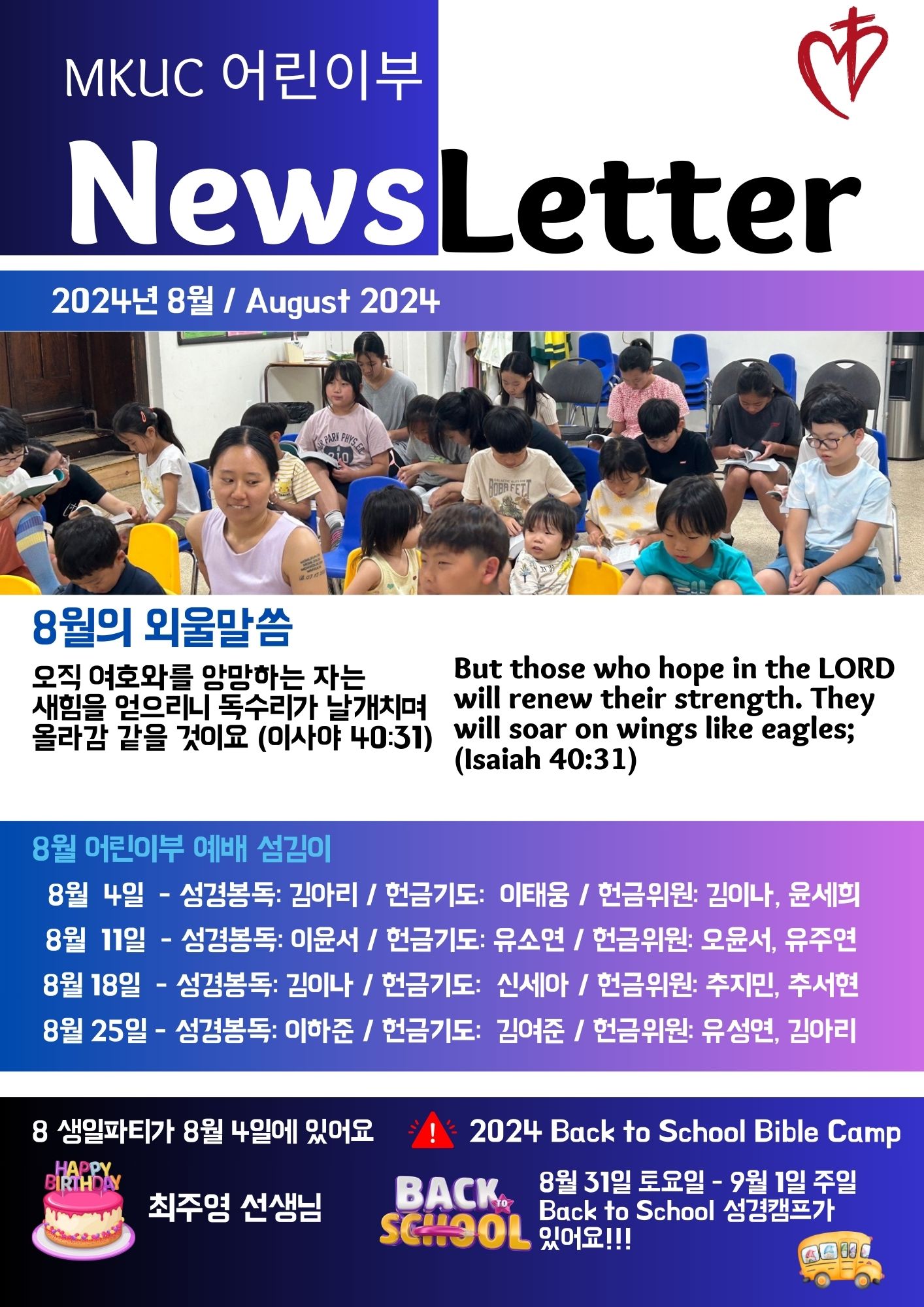 MKUC 어린이부 2024년 8월 Newsletter 입니다 - PART 1