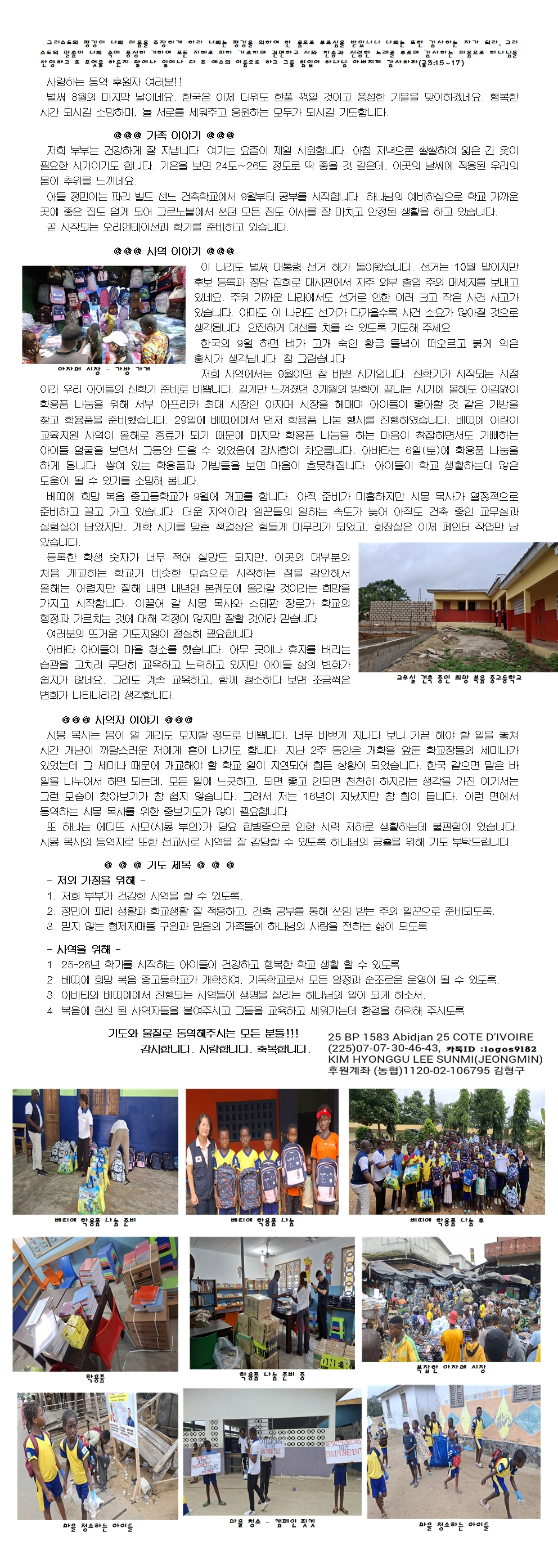 꼬트디부아르 김형구 이선미 선교사 8월 선교소식