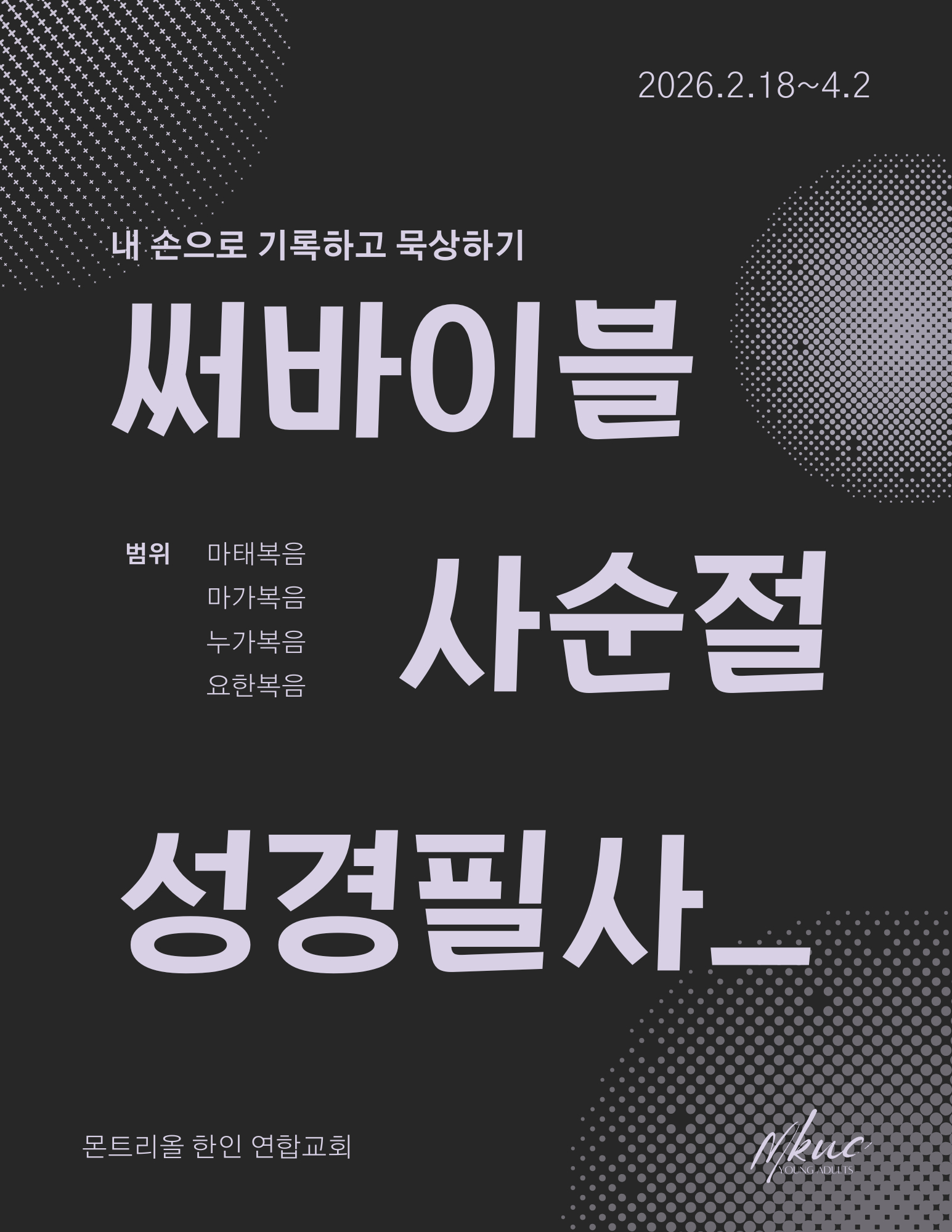 몬트리올 한인 연합교회 청년부는 올해 사순절 기간 동안 사복음서 성경필사를 할 예정입니다.