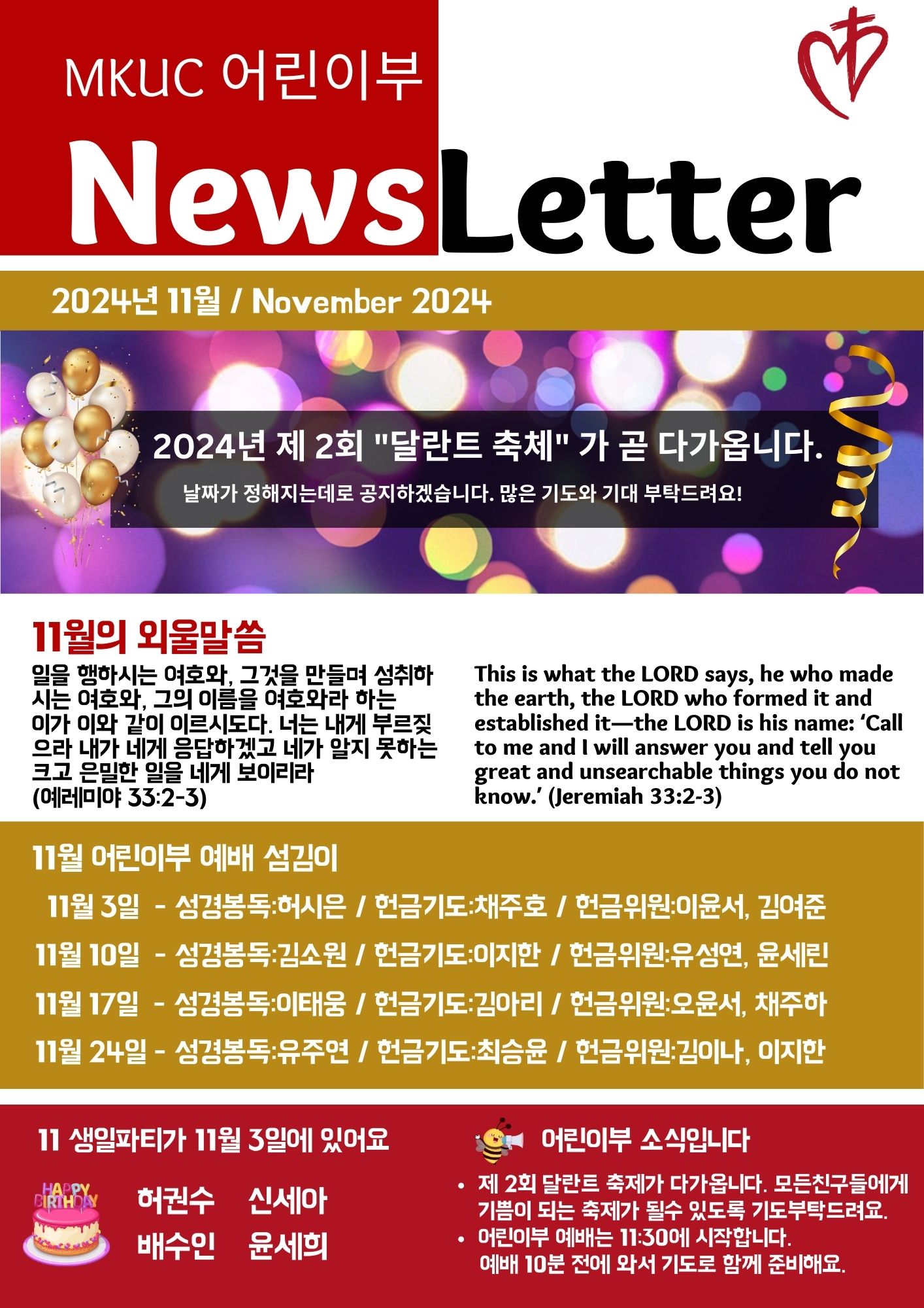 MKUC 어린이부 2024년 11월 Newsletter 입니다 - PART 1