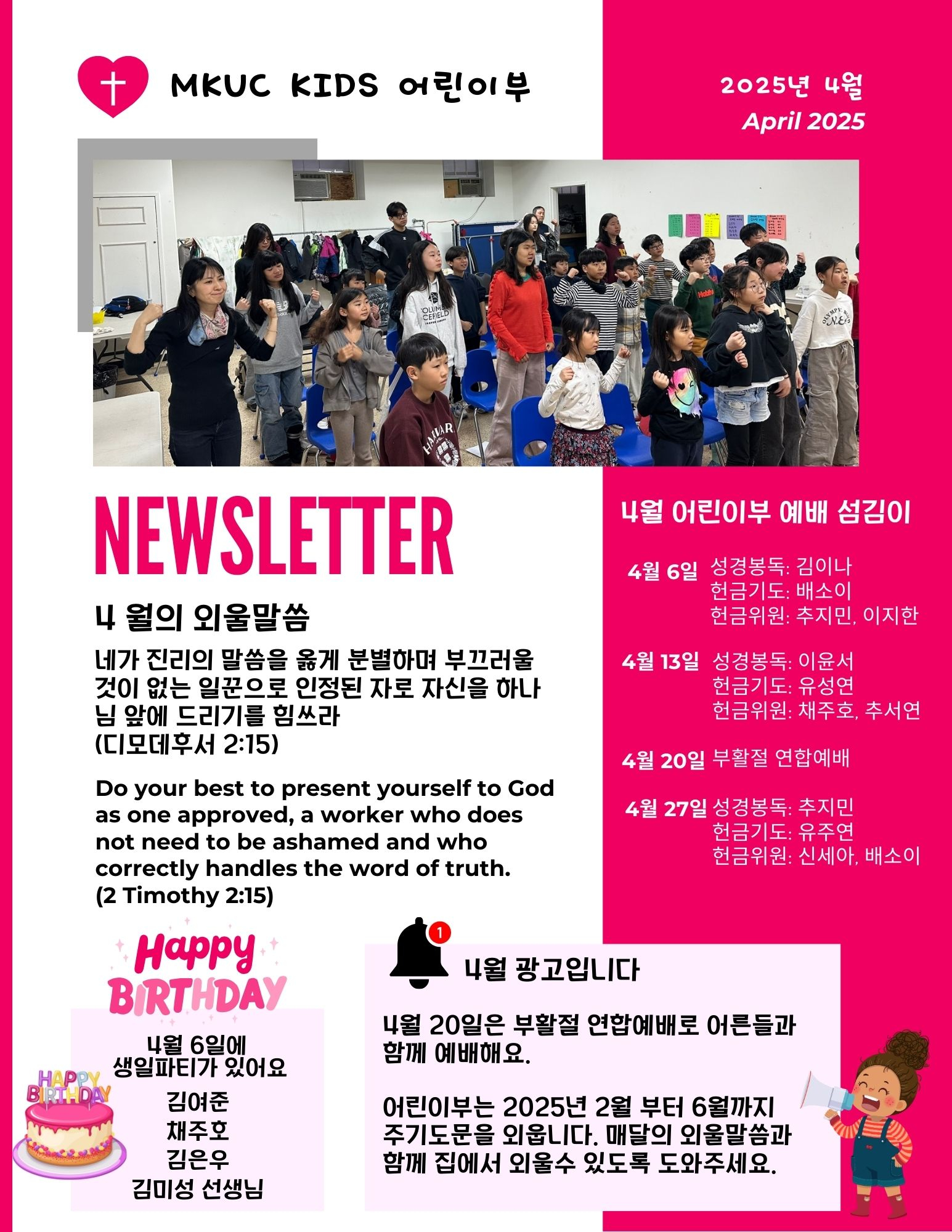 MKUC 어린이부 2025년 4월 Newsletter 입니다