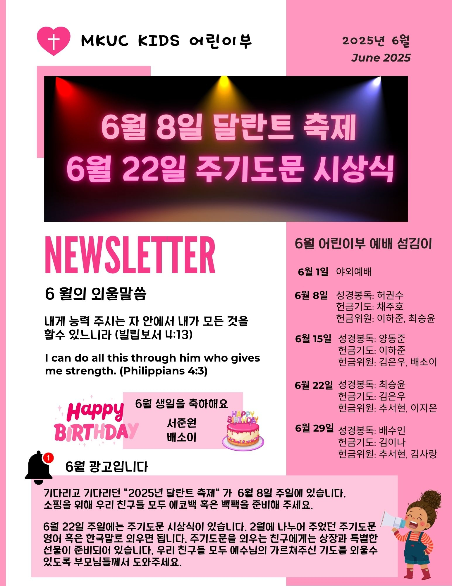 MKUC 어린이부 2025년 6월 Newsletter 입니다