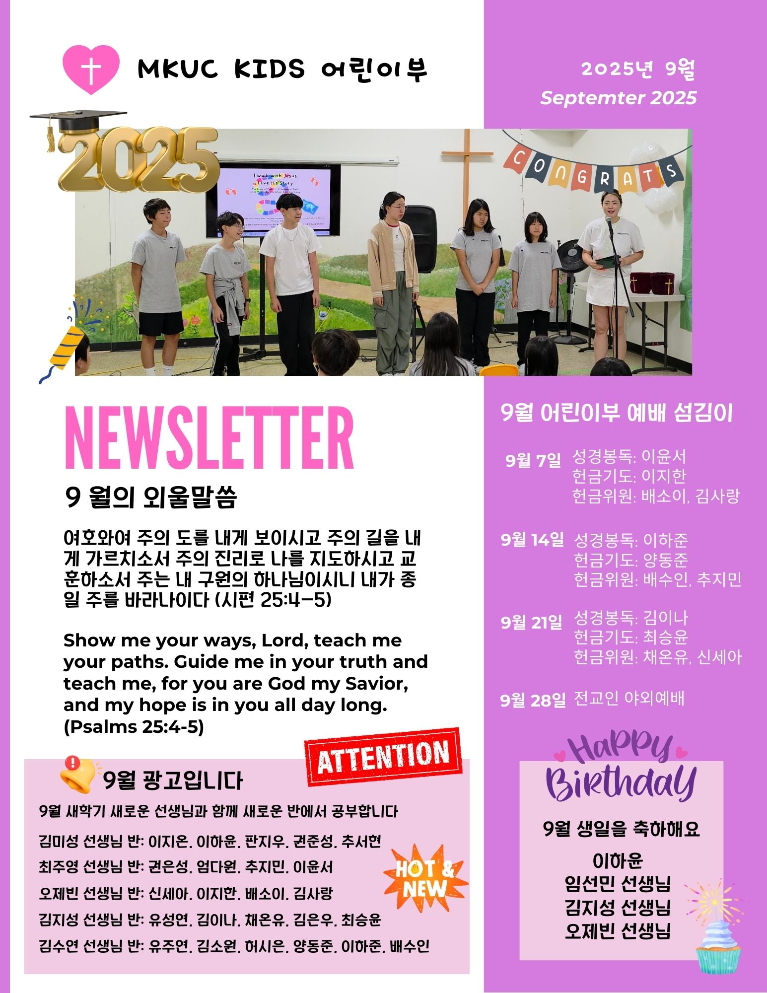 MKUC 어린이부 2025년 9 월 Newsletter 입니다 - Part 1