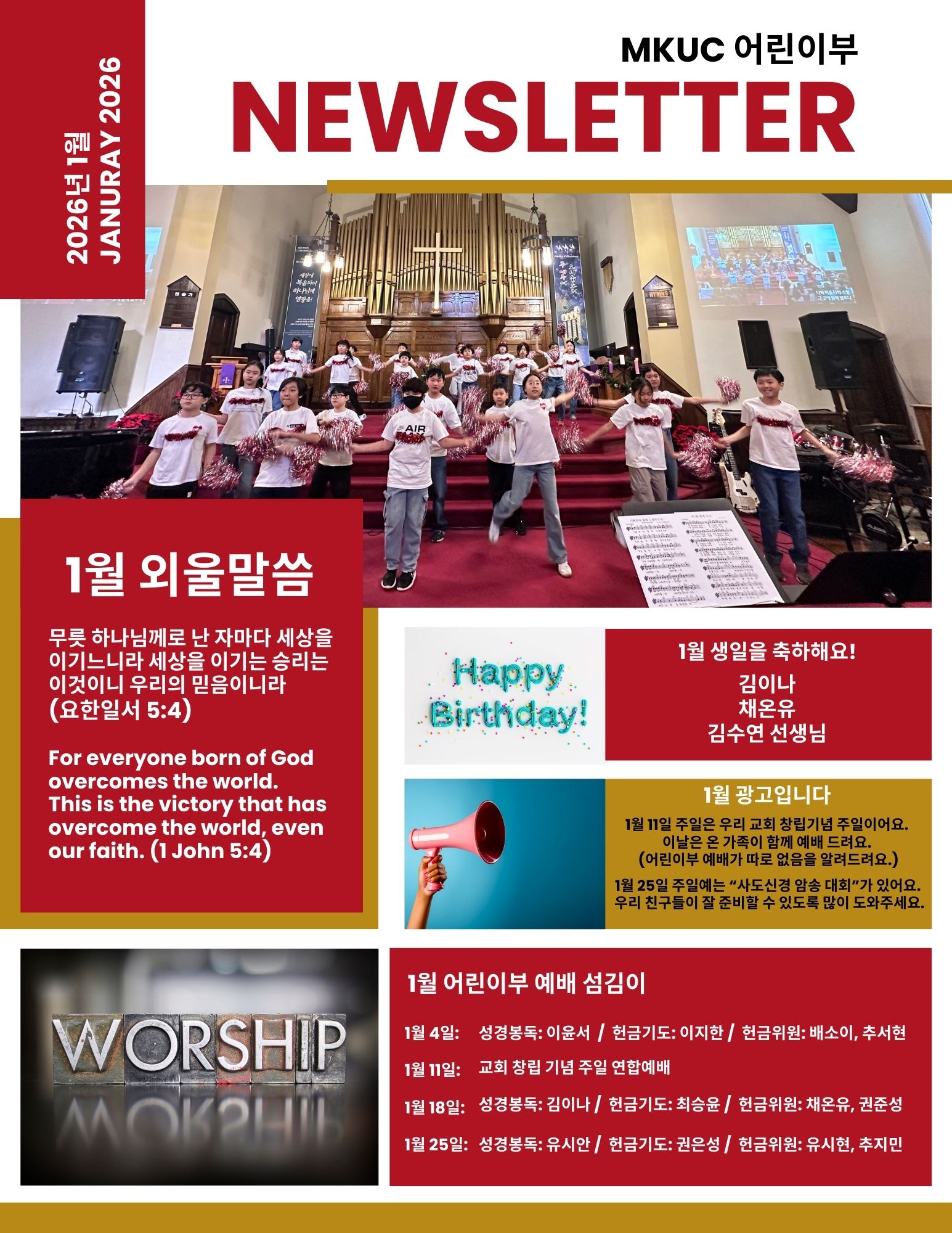 MKUC 어린이부 2026년 1 월 Newsletter 입니다 - Part 1