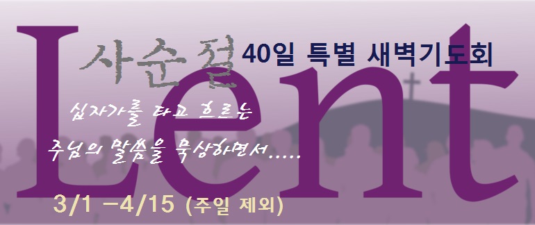 사순절 40일 특별 새벽기도회를 3월 1일부터 4월 15일까지(주일은 제외) 합니다.