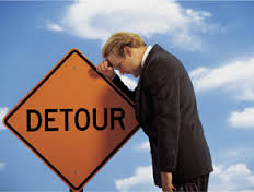 Detour 입니다. 무슨 일인지 모르지만 돌아가라는 싸인이지요.