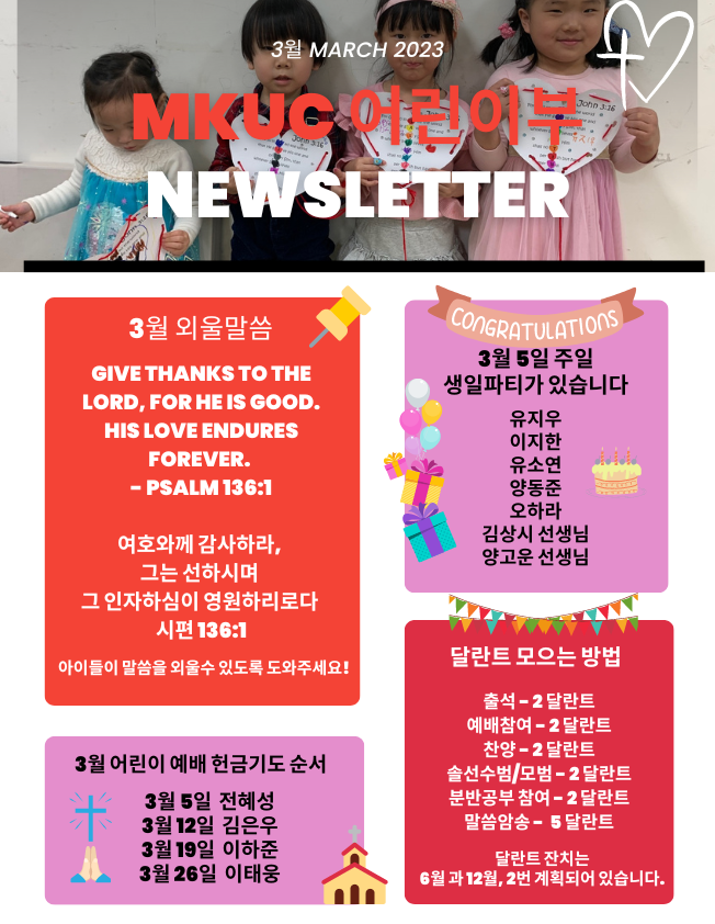 MKUC 어린이부 3월 가정통신문