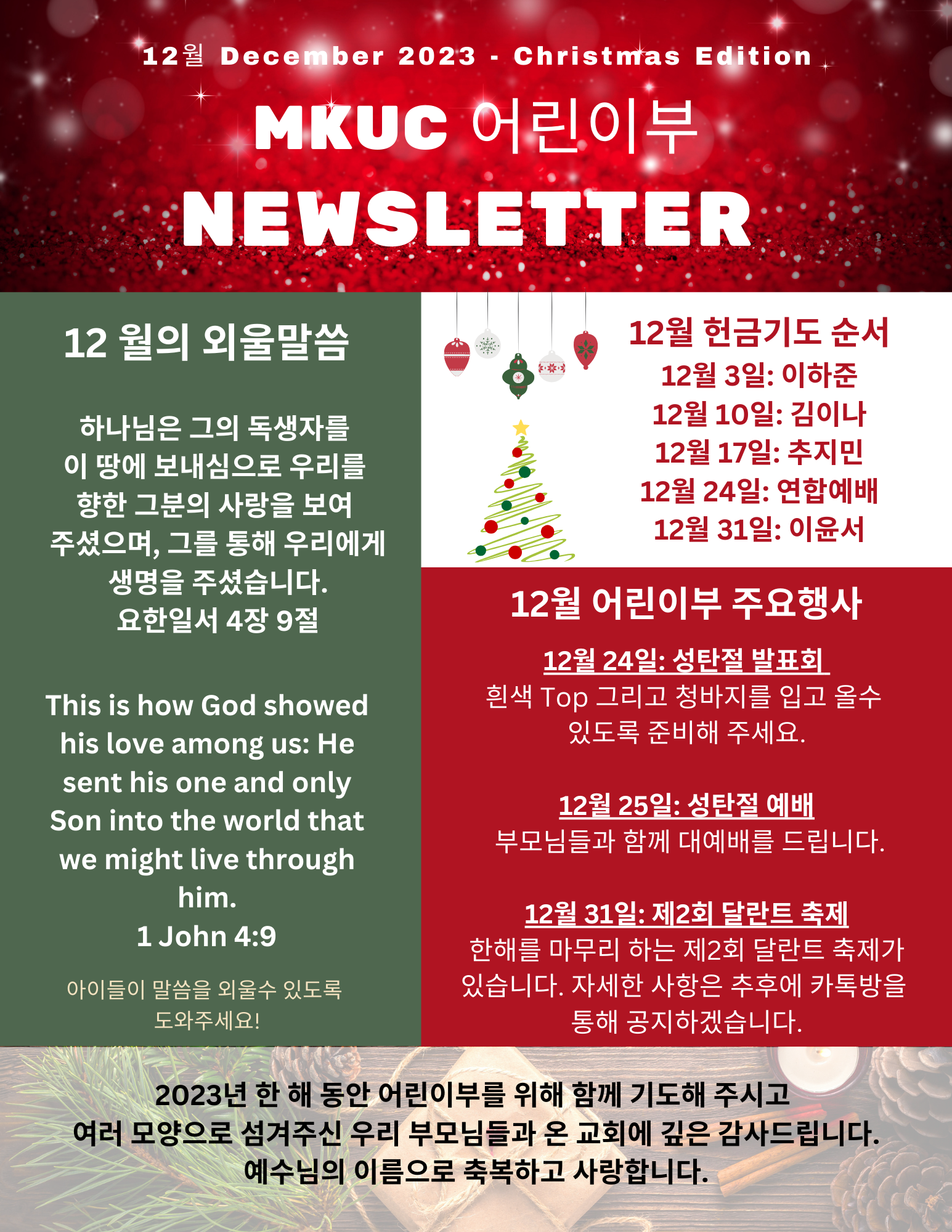 MKUC 어린이부 12월 Newsletter 입니다 - PART 1